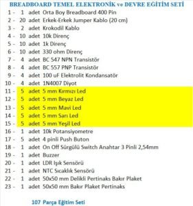 107 Parça TEMEL ELEKTRONİK ve DEVRE Eğitim SETİ